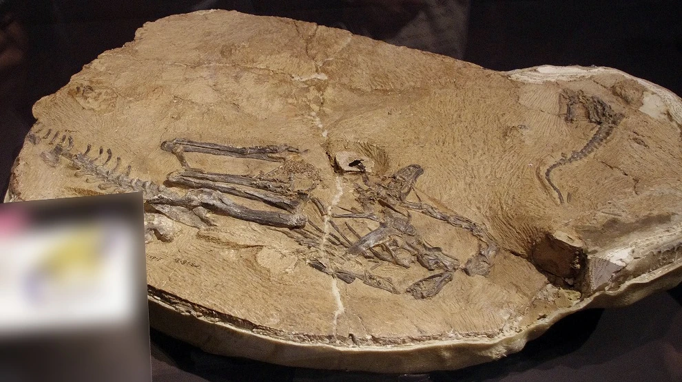 Holotype and assigned specimen (upper right) exhibited in Tokyo