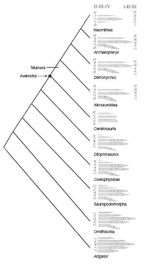 - ↑ Feduccia, A. 1999. 1,2,3 = 2,3,4: accomodating the cladogram. Proceedings of the National Academy of Sciences 96, 4740-4742.