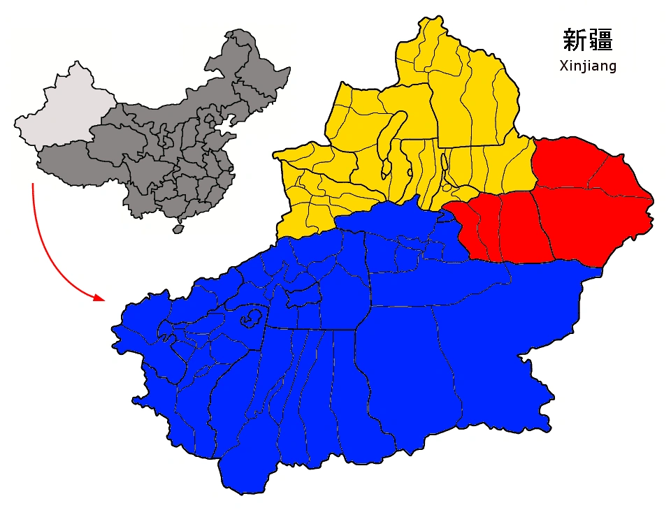 Location of Xinjiang province in China, where M. sinocanadorum is found; the Junggar Basin is seen in yellow.