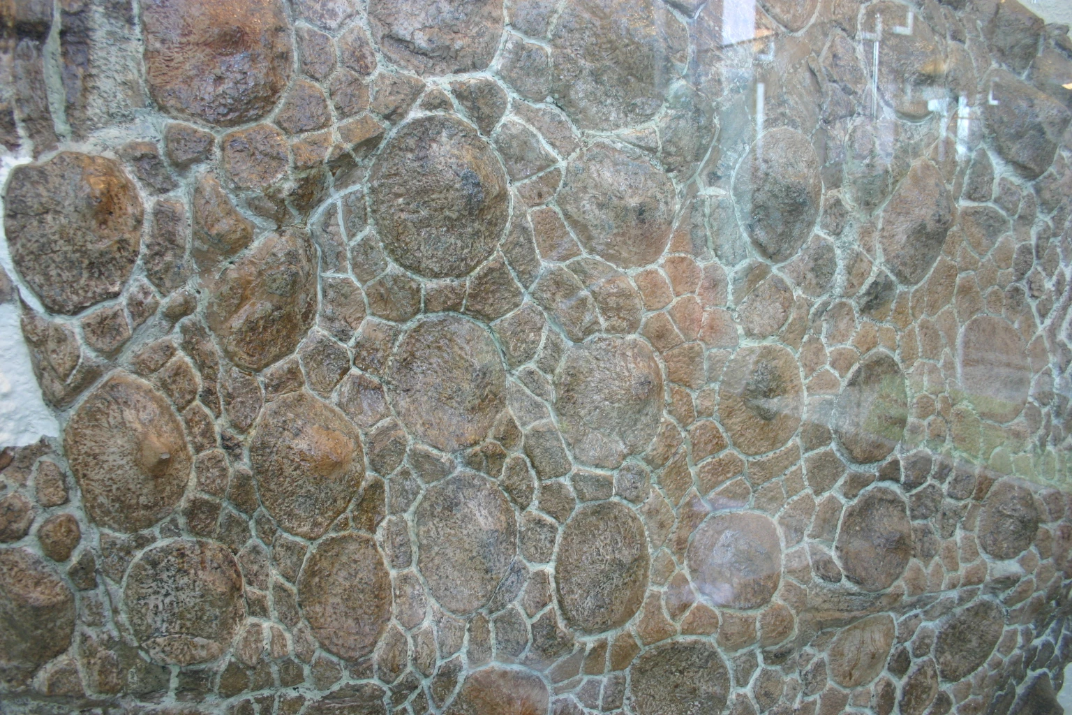 Like other nodosaurids, Sauropelta was covered in armor formed from bony masses embedded in the skin (osteoderms). The discovery of a skeleton with the body armor preserved in situ allowed Carpenter and other scientists to accurately describe this protection. Two parallel rows of domed scutes ran down the top of the neck, along the anteroposterior axis (front to back). On the upper surface of the back and tail, the skin was covered in small, bony nodules (ossicles), which separated larger conical scutes arranged in parallel rows along the mediolateral axis (side to side). Over the hips, the ossicles and larger domed plates were interlocked very tightly to form a structure called a sacral shield.[1] This shield is also found in ankylosaurs like Polacanthus and Antarctopelta. Large, pointed spines lined the sides of the neck, increasing in size towards the shoulders, and then decreasing in size again along the side of the body until they stopped just before the hips. Behind the hips, flat triangular plates lined the tail on both sides, pointing laterally (outwards) and decreasing in size towards the end of the tail. Carpenter originally described the cervical (neck) spines and caudal plates as belonging to a single row on each side, although more recently he and Jim Kirkland reconstructed them in two parallel rows on each side, one above the other. The upper row of cervical spines pointed backwards and upwards (posterodorsally), while the lower row pointed backwards and outwards (posterolaterally). The bases of each pair of cervical spines and each pair of caudal plates were fused together, greatly restricting mobility in both the neck and upper tail.